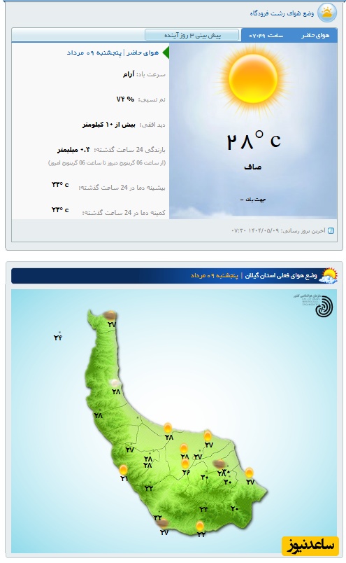 وضعیت آب و هوای امروز رشت