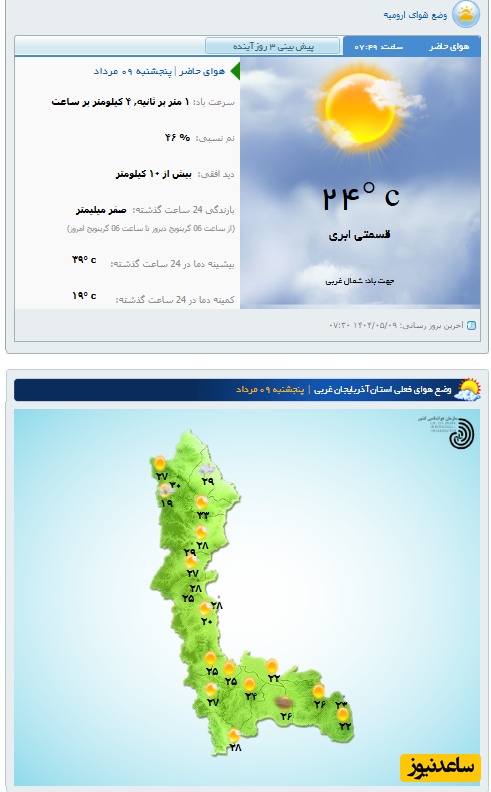 وضعیت آب و هوای امروز ارومیه