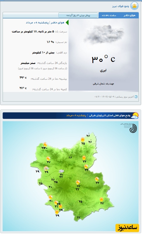 وضعیت آب و هوای امروز تبریز