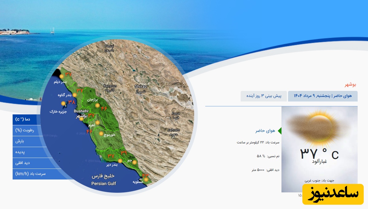 وضعیت آب و هوای امروز بوشهر