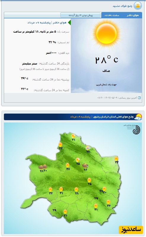 وضعیت آب و هوای امروز مشهد