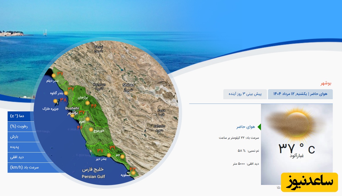 وضعیت آب و هوای امروز بوشهر