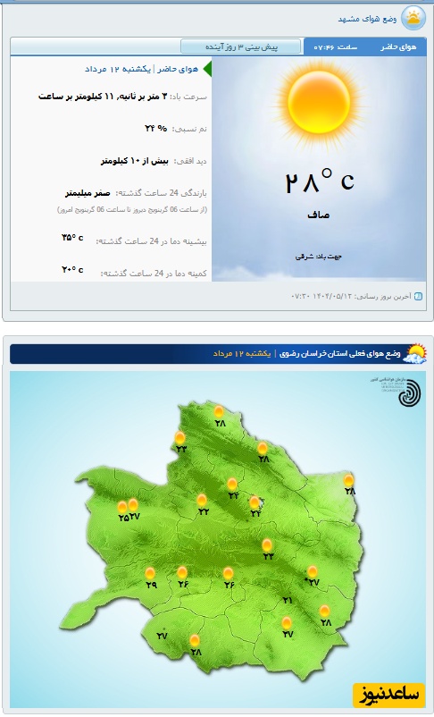 وضعیت آب و هوای امروز مشهد