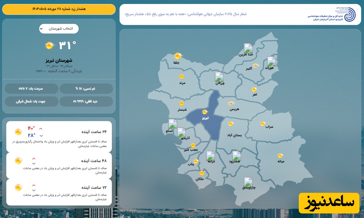 وضعیت آب و هوای امروز تبریز