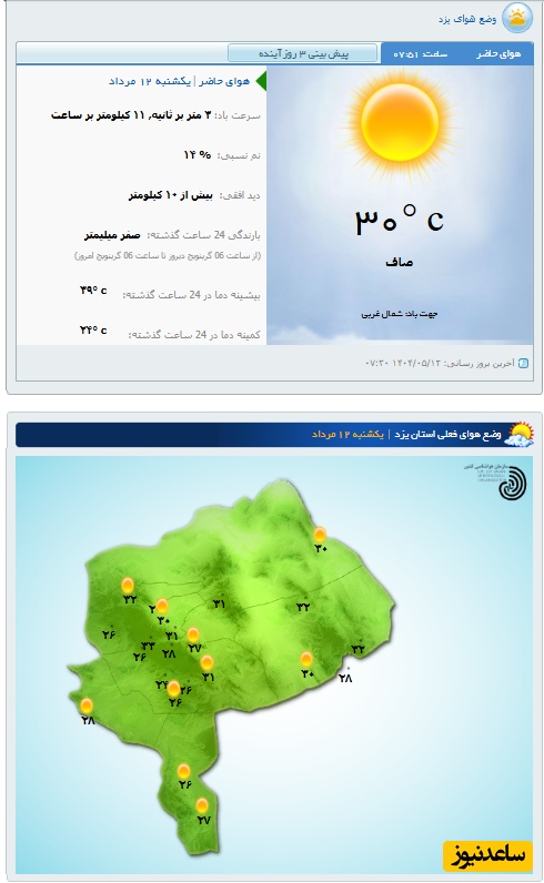 وضعیت آب و هوای امروز یزد