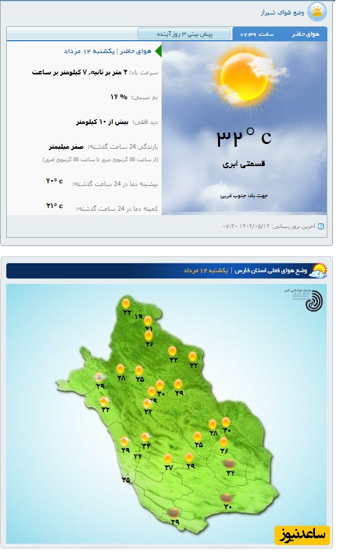 وضعیت آب و هوای امروز شیراز