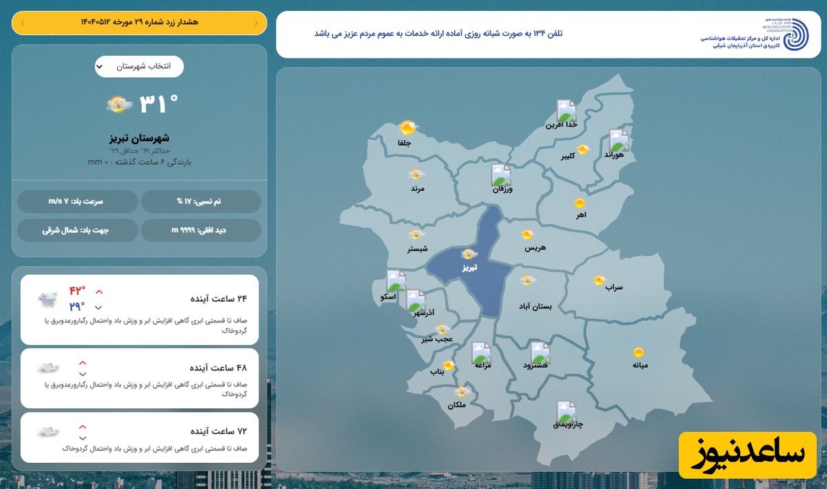 وضعیت آب و هوای امروز تبریز