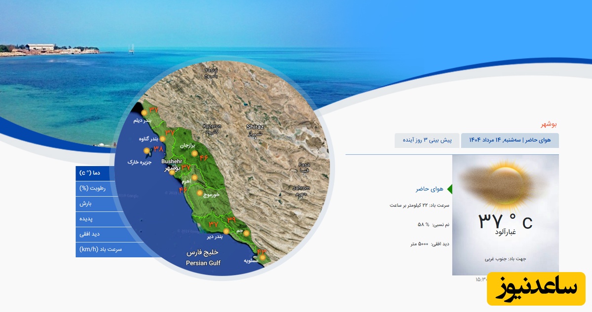 وضعیت آب و هوای امروز بوشهر