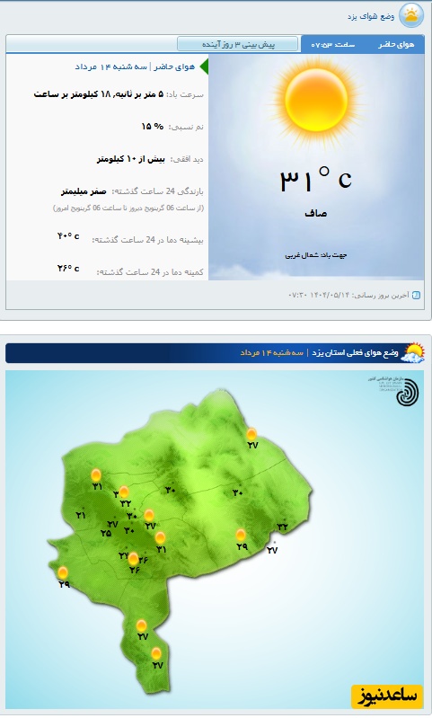 وضعیت آب و هوای امروز یزد