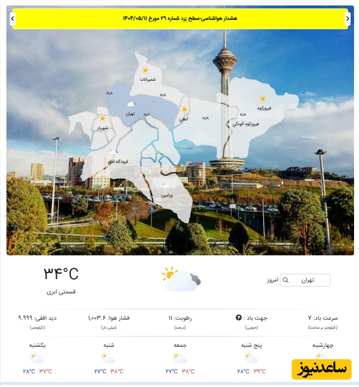 وضعیت آب و هوای امروز تهران