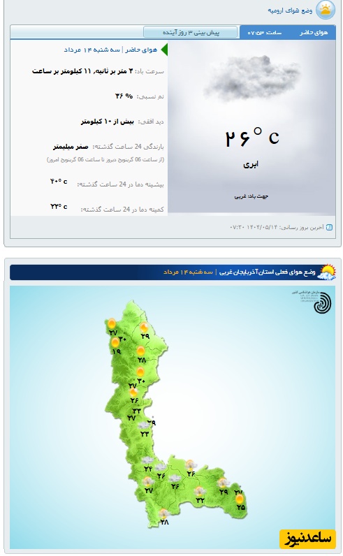 وضعیت آب و هوای امروز ارومیه