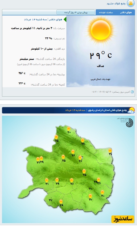 وضعیت آب و هوای امروز مشهد