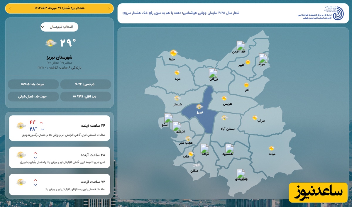 برای دسترسی سریعتر به وضعیت آب و هوای هر منطقه روی شهر موردنظر در زیر کلیک کنید: