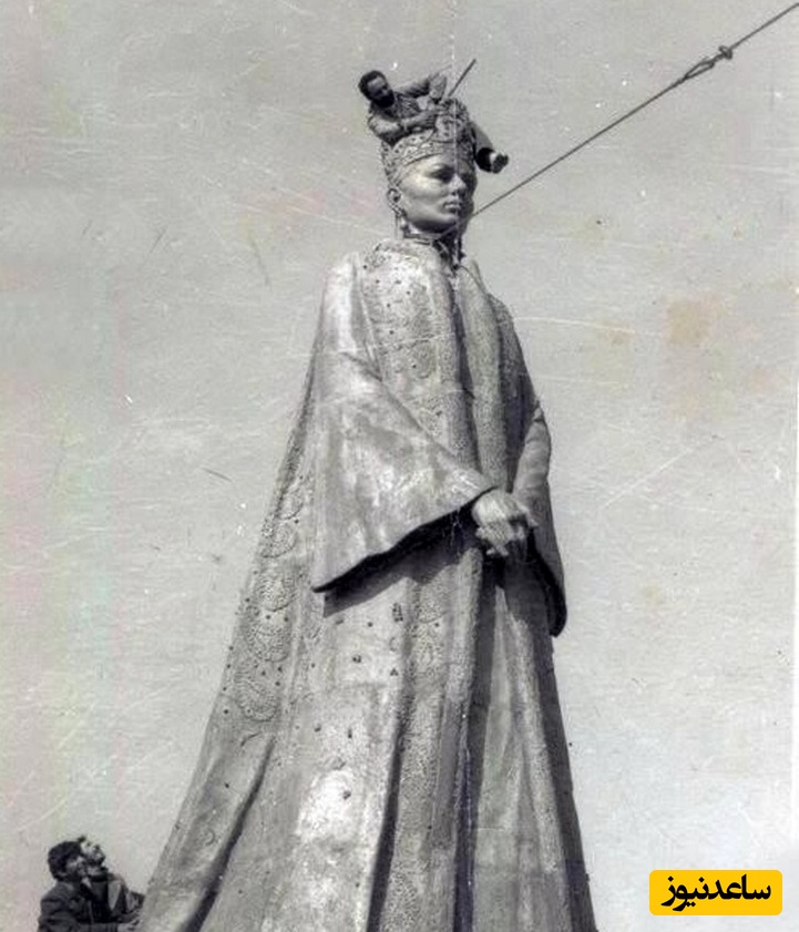 تصاویر زیر لحظه سرنگونی این مجسمه توسط مردم در سال 1357 را مشاهده میکنید.