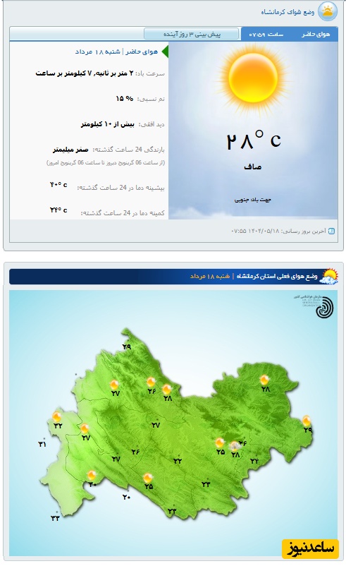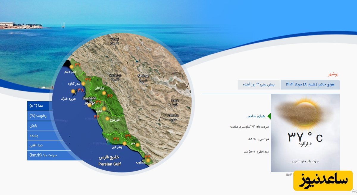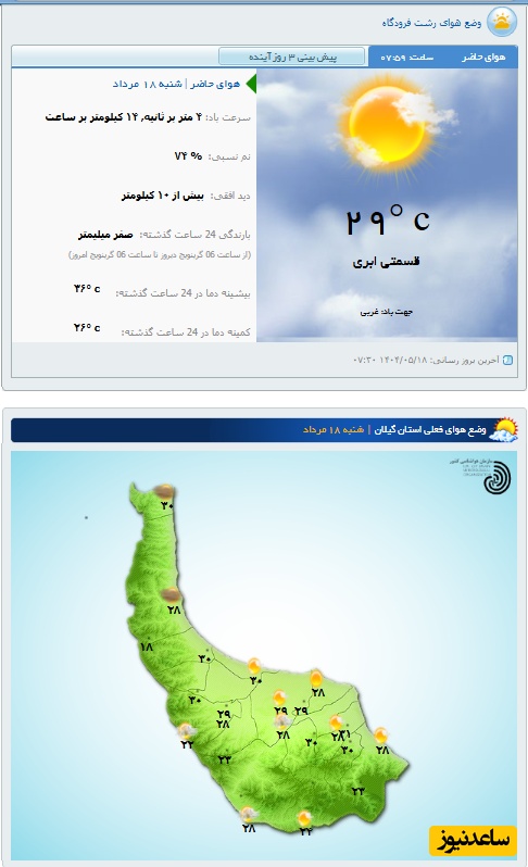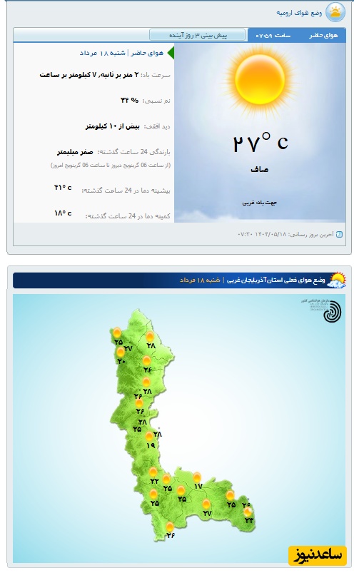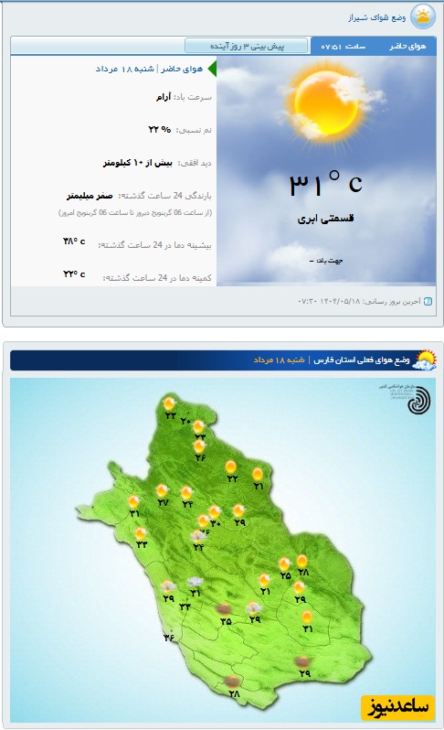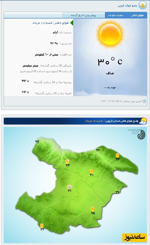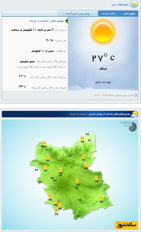وضعیت آب و هوای امروز شنبه 18 مرداد تهران، تبریز، اصفهان، مشهد، اهواز، قزوین، شیراز، بوشهر، رشت، ارومیه، کرمانشاه و یزد