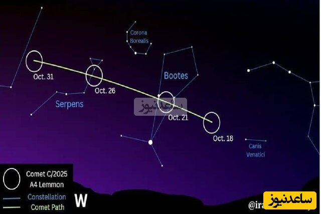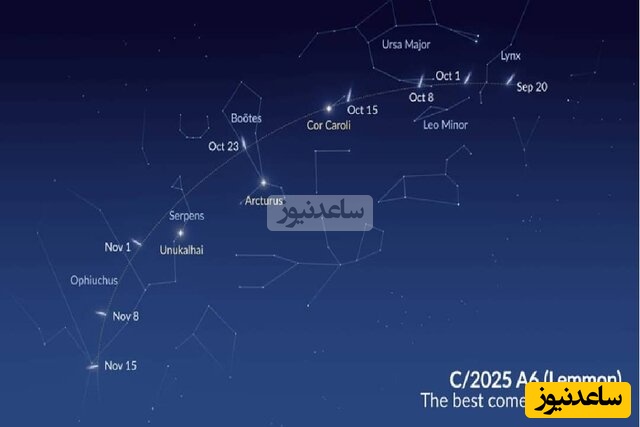 عتیقی ادامه داد: ماه گذشته دنبالهدار Lemmon A6 به سرعت روشنتر شد و نزدیک شدن به خورشید باعث افزایش فعالیت و درخشش آن شد. این روشن شدن، احتمال دیدن آن را حتی بدون ابزار در این شبها، آن هم در مناطق تاریک و عاری از غبار و آلودگی نوری افزایش داده است. در نزدیکترین گذر این دنبالهدار از نزدیک زمین، جای آن در آسمان تغییر کرده و در افق شامگاهی به سمت افق شمالغرب، در زمینه صورت فلکی گاوران (عوّا - Bootes) که به آن بادبادک هم میگویند، قرار دارد؛ صورت گاوران بین صور فلکی خرس بزرگ (دُباکبر) و خوشه (سنبله) جا خوش کرده است و در ادامه مسیر از زیر صورتفلکی بزرگ مار (Serpens) عبور خواهد کرد، به نحوی که شاید این دنبالهدارهای زیبا را با چشم غیرمسلح و یا دوربین دوچشمی و تلسکوپ کوچک بتوانید ببینید.