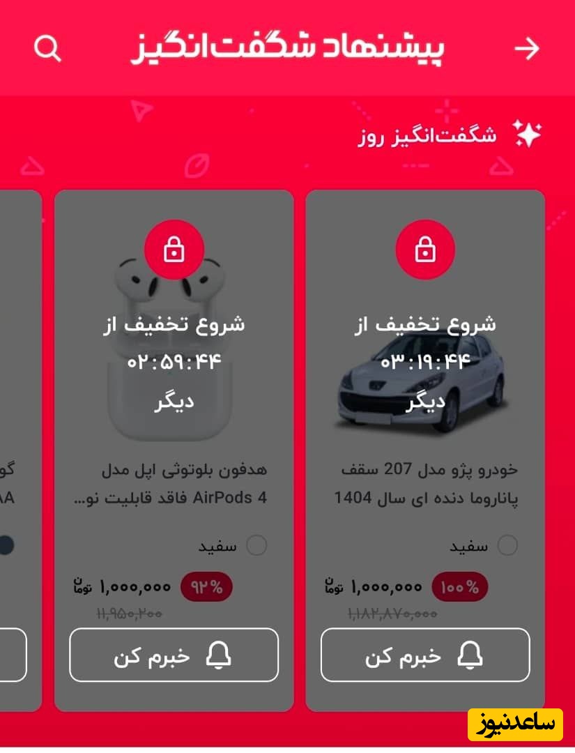 راس ساعت وارد سایت شدم اما آگهی باز نشد؛ برای اینکه مطمئن شوم این آگهی جز فریب چیزی نیست موارد دیگر را نیز امتحان کردم چرا که این نوع آگهی ها صرفا فقط 207 نبود و در هر ساعت آگهی های متفاوتی در این سایت گذاشته شده بود( از آیفون 17، یک میلیونی بگیرید تا موتور و ....)