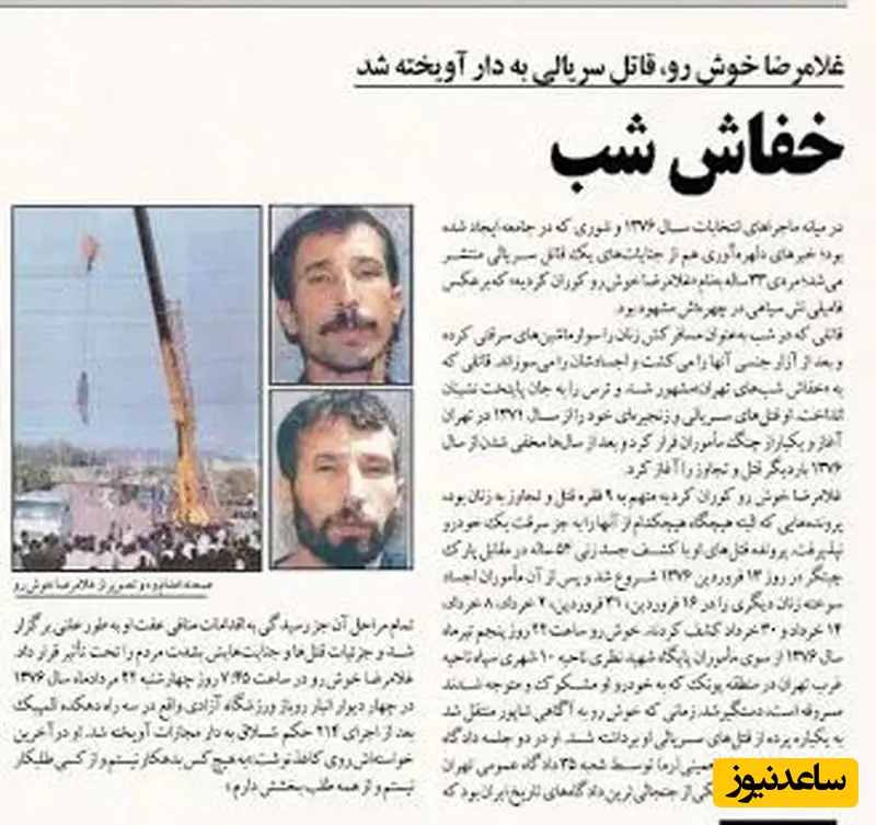 به گزارش سرویس حوادث ساعدنیوز به نقل از فرارو، غلامرضا خوشرو مشهور به خفاش شب یا خونآشام شبهای تهران قاتل سریالی اهل ایران بود که دست به قتلهای زنجیرهای همراه با سرقت و تجاوز جنسی میزد.