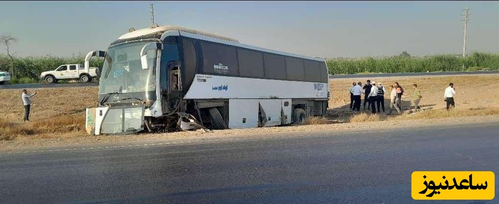 (عکس) تصادف اتوبوس ادامه دارد.../ واژگونی اتوبوس در جاده اهواز سه مصدوم برجای گذاشت