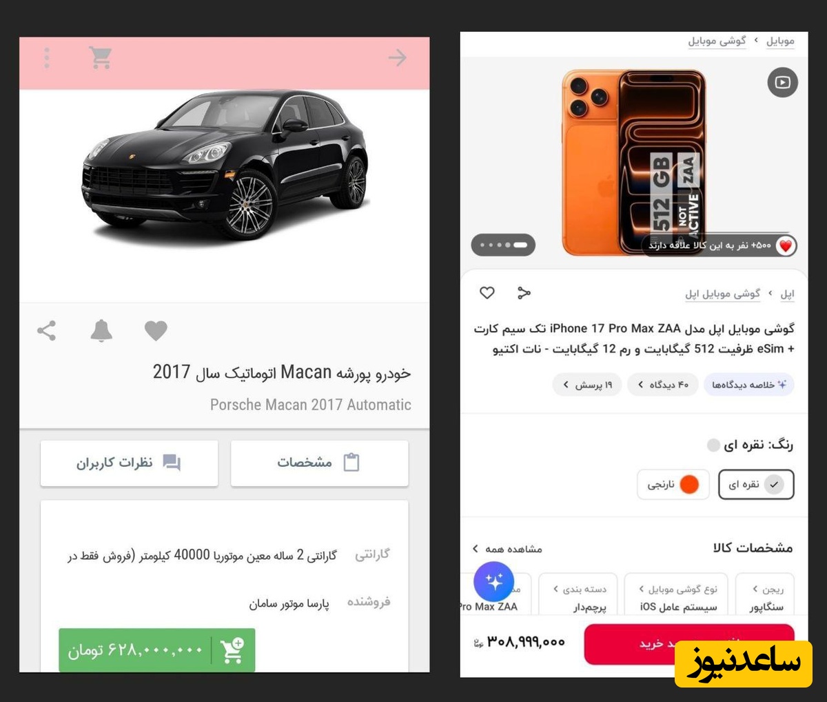 ساعدنیوز: سال 96 با 620 میلیون می شد از دیجی کالا پورشه ماکان آخرین مدل خرید، الان با 620 تومان 2 تا گوشی آیفون 17 پرومکس!