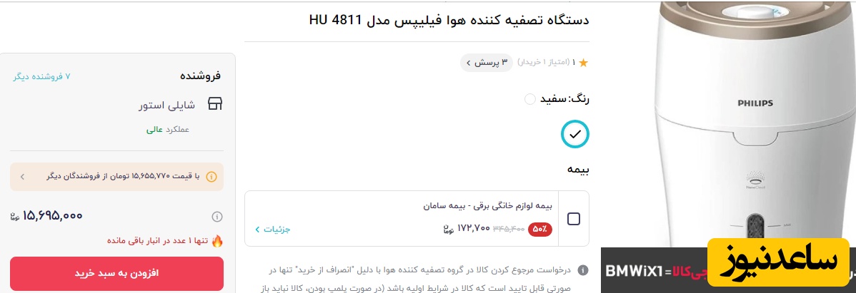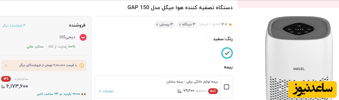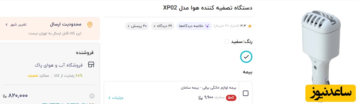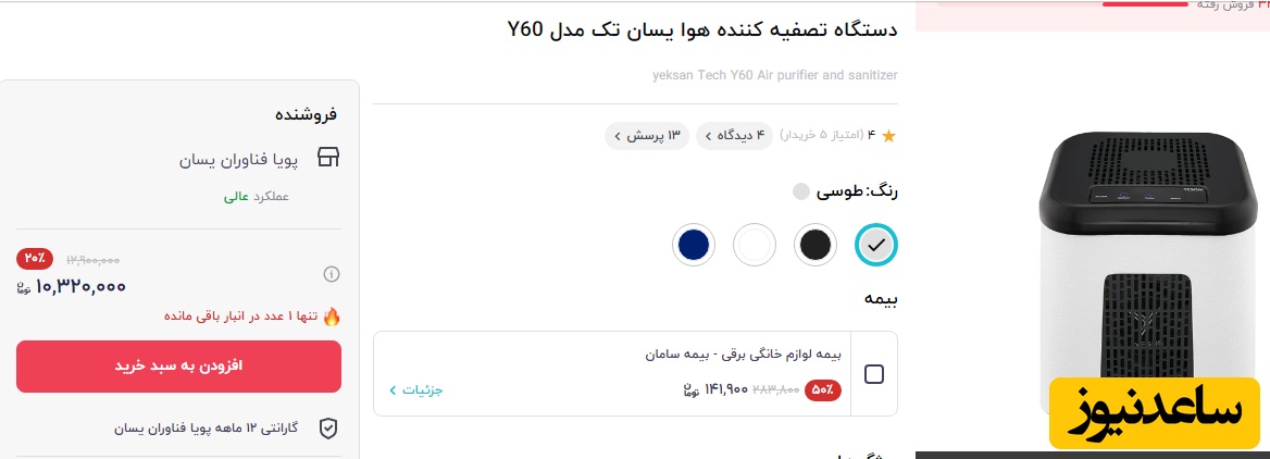 در بازه قیمتی بالای 10 میلیون تومان نیز یک دستگاه تصفیهکننده هوا با قیمت 10 میلیون و 320 هزار تومان به فروش میرسد. دستگاه دیگری که اتاقها را تا 35 متر مربع مرطوب میکند، با قیمت حدودی 15 میلیون و 700 هزار تومان آگهی شده است.