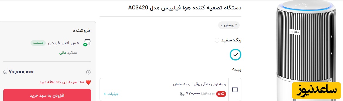 در قیمتهای بالاتر محصول دیگری که محدوده مساحت بیش از 64 متر را تحت پوشش قرار میدهد به قیمت 20 میلیون و 190 هزار تومان به فروش میرسد. همچنین دستگاههای تصفیه هوای دیگر با قیمتهای 42 میلیون و 800 هزار و 70 میلیون تومان به دست خریدار میرسند.