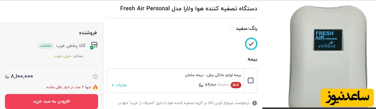 بررسی پلتفرمهای خرید و فروش آنلاین نشان میدهد که ارزانترین دستگاه تصفیه هوا 820 هزار تومان قیمت دارد. این دستگاه توانایی حذف ریزگرد 1 و 2/5 میکرون و غبار شناور و گاز مونوکسید کربن و آمونیاک را دارد و قابلیت تنظیم، خاموش و روشن کردن را ندارد.