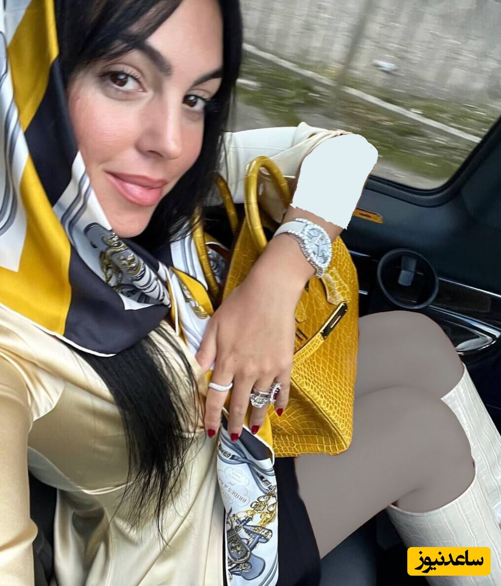 عکس | روسری زیبای جورجینا همسر رونالدو با کیف زرد لاکچریاش همه رو مبهوت خود کرد