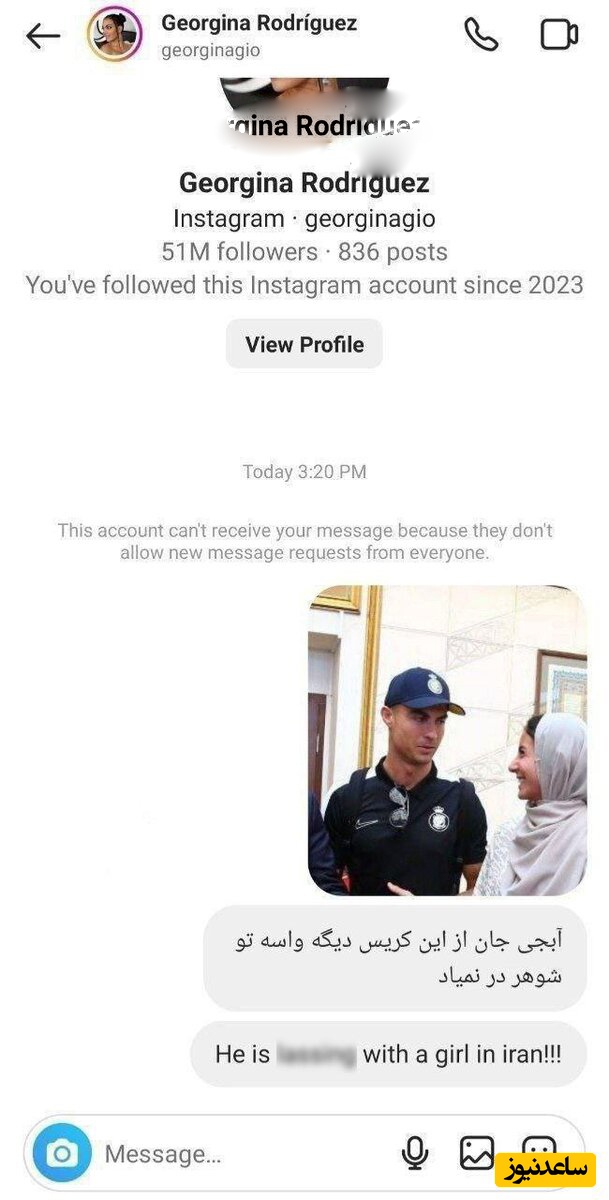 ساعد نیوز: هواداران ایرانی با ارسال عکسی از رونالدو و دختر درویش به نامزد رونالدو در اینستاگرام شوخی کردند.