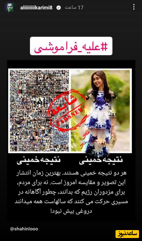 نکته قابل تامل هشتگ #علیه_فراموشی که علی کریمی در استوری خود منتشر کرده او در حالی از این هشتگ استفاده کرده که روی فراموشی مردم حساب بازکرده و اینچنین شایعه 8 سال پیش را دوباره منتشر کرده است.