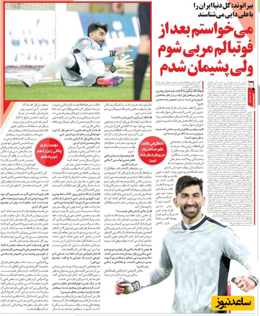 به گزارش سرویس ورزش ساعدنیوز به نقل از خبرورزشی، علیرضا بیرانوند زمستان سال 1401 یکی از محبوبترین چهرههای پرسپولیس محسوب میشد و موقعیتش نزد هواداران این تیم دقیقاً بر خلاف شرایط کنونی او بود. بیرانوند بیست و چهارم دی سال 1401 و بعد از اینکه از طرف مخاطبان خبرورزشی به عنوان بهترین بازیکن نیم فصل اول لیگ بیست و دوم انتخاب شد، مصاحبه ای اختصاصی با خبرورزشی انجام داد که بد نیست دوباره به آن نگاهی بیندازیم: