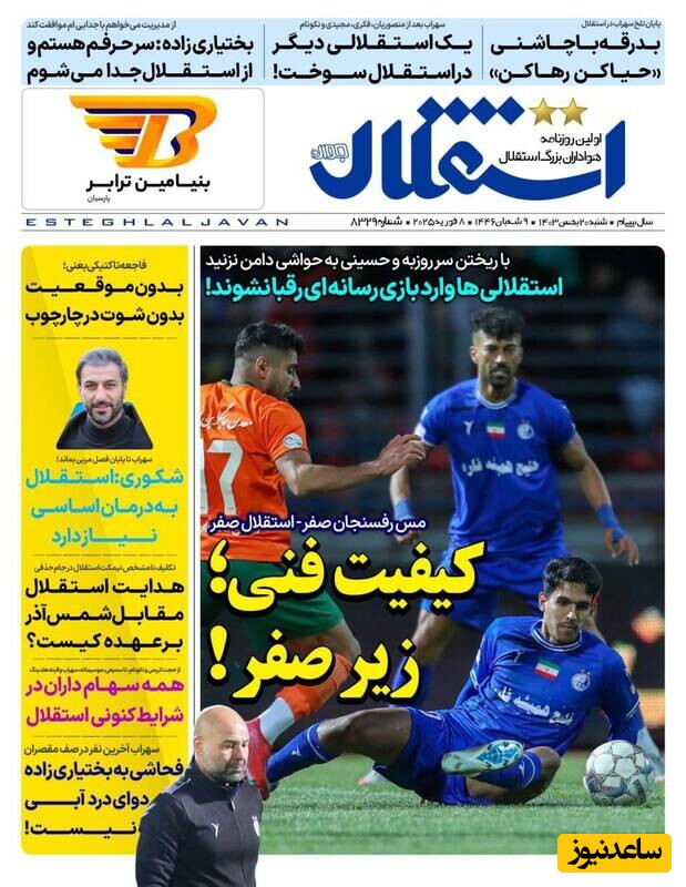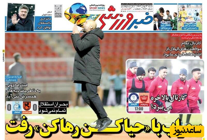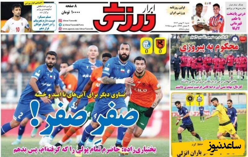 ساعدنیوز: در روز شنبه 20 بهمن 1403، روزنامه‌های کشور با عناوین مختلف به مهم‌ترین رویدادهای ورزشی، اجتماعی و سیاسی پرداخته‌اند. از تحولات جدید در عرصه‌های مختلف تا واکنش‌ها به اتفاقات روز، این عناوین نمایانگر دغدغه‌های جامعه در این روزها هستند.