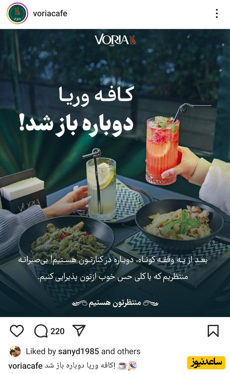به گزارش ساعدنیوز، صفحه اینستاگرام کافه وریا خبر از رفع پلمپ این مجموعه و فعالیت دوباره آن داد: