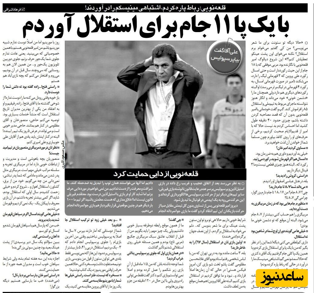 به گزارش سرویس ورزش ساعدنیوز به نقل از خبرورزشی، امیر قلعه نویی که هم اکنون هدایت تیم ملی فوتبال کشورمان راه بر عهده دارد، طی مصاحبهای از گذشته خود در استقلال حرف زد.