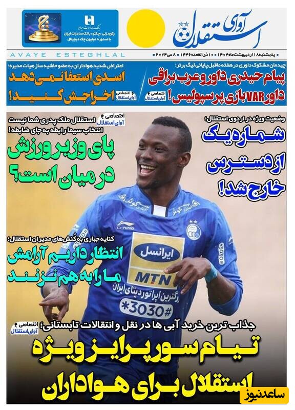 ساعدنیوز: در روز پنجشنبه 18 اردیبهشت 1404، روزنامه‌های کشور با عناوین مختلف به مهم‌ترین رویدادهای ورزشی، اجتماعی و سیاسی پرداخته‌اند. از تحولات جدید در عرصه‌های مختلف تا واکنش‌ها به اتفاقات روز، این عناوین نمایانگر دغدغه‌های جامعه در این روزها هستند.