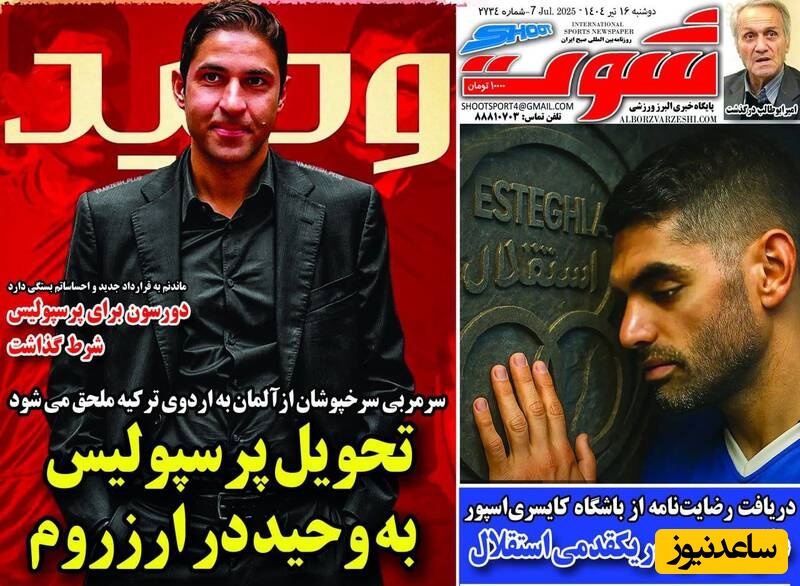 به گزارش سرویس ورزش ساعدنیوز، روزنامه‌ها در شماره امروز خود به موضوعات مختلفی پرداخته‌اند؛ از گزارش‌های داغ ورزشی و حواشی پیرامون تیم‌های ملی گرفته تا تحلیل‌های سیاسی و اقتصادی. در این میان، اخبار روز، تحلیل‌ها و دیدگاه‌های تازه‌ای به مخاطبان ارائه می‌دهند.