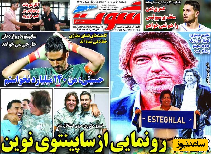 مهم‌ترین عناوین ورزشی پنجشنبه 19 تیر 1404 در یک نگاه / ساپینتو به هواداران : آمده ام جام را باهم ببریم