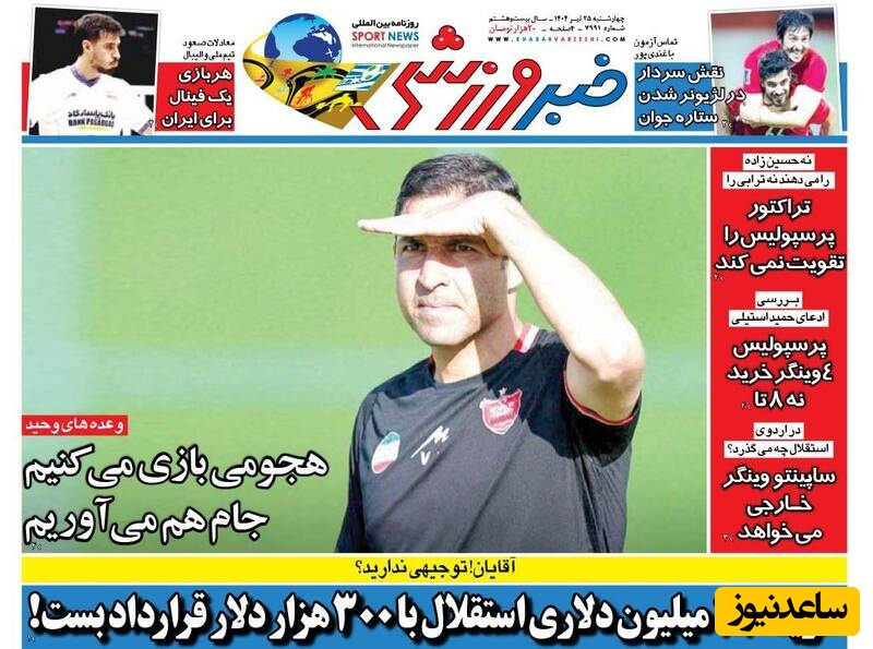 به گزارش سرویس ورزش ساعدنیوز، روزنامه‌ها در شماره امروز خود به موضوعات مختلفی پرداخته‌اند؛ از گزارش‌های داغ ورزشی و حواشی پیرامون تیم‌های ملی گرفته تا تحلیل‌های سیاسی و اقتصادی. در این میان، اخبار روز، تحلیل‌ها و دیدگاه‌های تازه‌ای به مخاطبان ارائه می‌دهند.