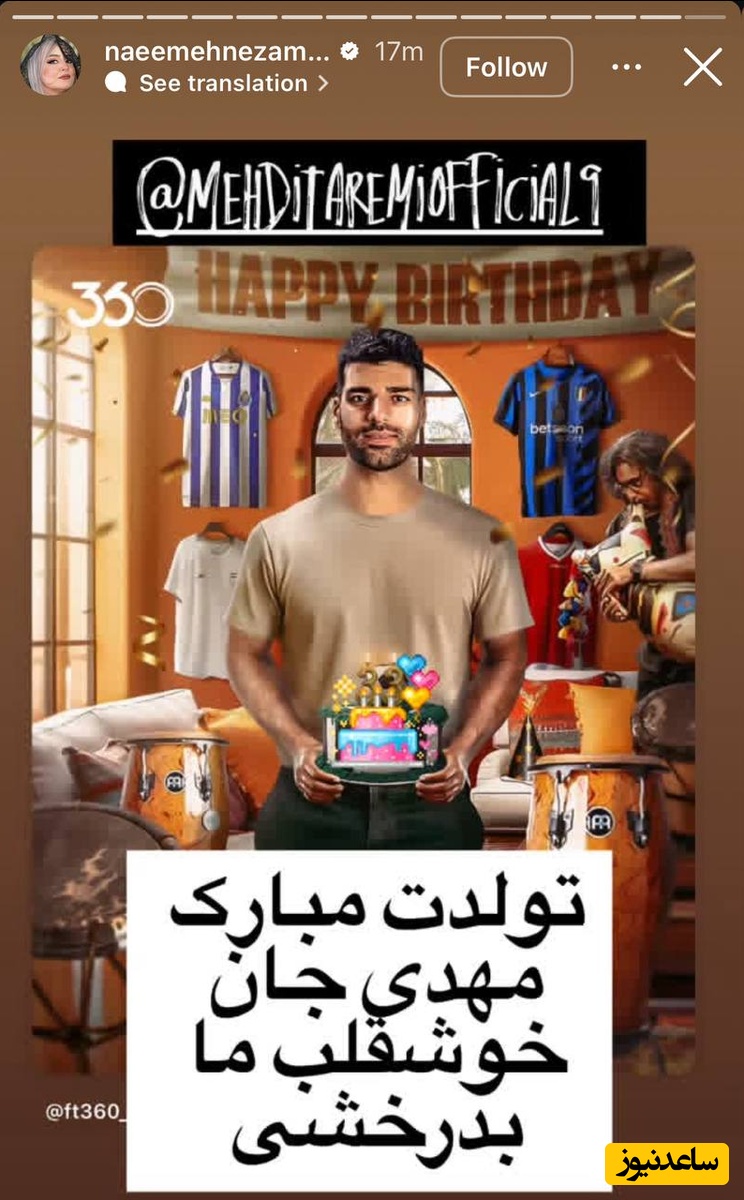 به گزارش سرویس ورزش ساعدنیوز، نعیمه نظامدوست، بازیگر سینما و تلویزیون، با انتشار تصویری گرافیکی از مهدی طارمی در اینستاگرام، تولد 33 سالگی این ستاره فوتبال ایران را تبریک گفت. در این تصویر، طارمی در کنار پیراهنهای باشگاههای سابق و فعلیاش دیده میشود. نظامدوست در پیامی نوشت: