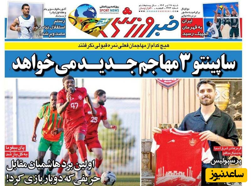 به گزارش سرویس ورزش ساعدنیوز، روزنامه‌ها در شماره امروز خود به موضوعات مختلفی پرداخته‌اند؛ از گزارش‌های داغ ورزشی و حواشی پیرامون تیم‌های ملی گرفته تا تحلیل‌های سیاسی و اقتصادی. در این میان، اخبار روز، تحلیل‌ها و دیدگاه‌های تازه‌ای به مخاطبان ارائه می‌دهند.