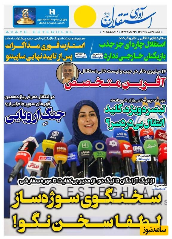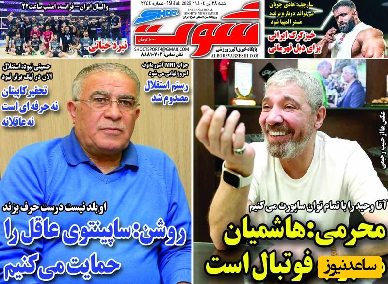 ساعدنیوز: در روز شنبه 28 تیر 1404، روزنامه‌های کشور با عناوین مختلف به مهم‌ترین رویدادهای ورزشی، اجتماعی و سیاسی پرداخته‌اند. از تحولات جدید در عرصه‌های مختلف تا واکنش‌ها به اتفاقات روز، این عناوین نمایانگر دغدغه‌های جامعه در این روزها هستند.