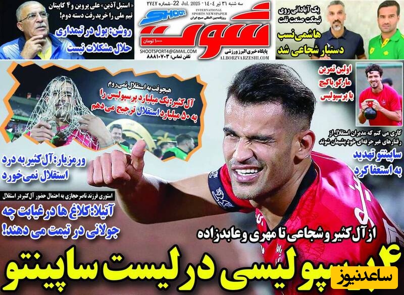 به گزارش سرویس ورزش ساعدنیوز، روزنامه‌ها در شماره امروز خود به موضوعات مختلفی پرداخته‌اند؛ از گزارش‌های داغ ورزشی و حواشی پیرامون تیم‌های ملی گرفته تا تحلیل‌های سیاسی و اقتصادی. در این میان، اخبار روز، تحلیل‌ها و دیدگاه‌های تازه‌ای به مخاطبان ارائه می‌دهند.
