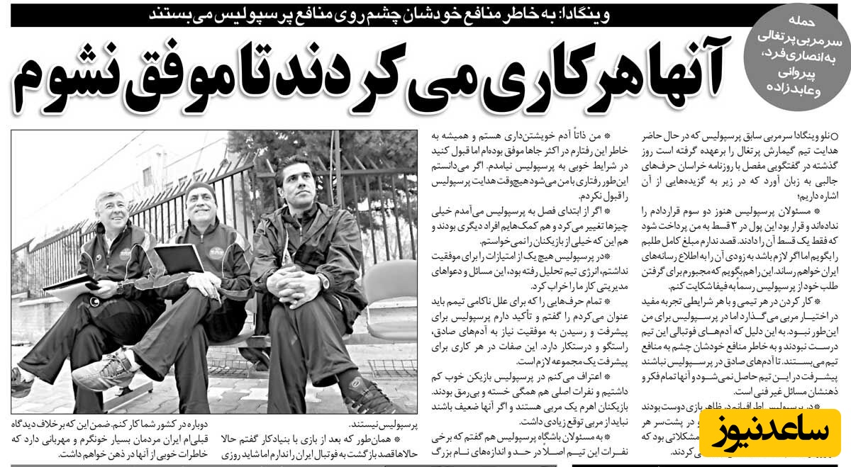 وینگادا طی مصاحبهای که پنجم مرداد سال 1388 در خبرورزشی منتشر شد، پیرامون اتفاقات پرسپولیس در آن مقطع دست به افشاگری زد. همراه با یکدیگر خلاصه حرفهای این مربی خبرساز پرتغالی را مرور میکنیم.