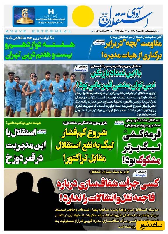 به گزارش سرویس ورزش ساعدنیوز، روزنامه‌ها در شماره امروز خود به موضوعات مختلفی پرداخته‌اند؛ از گزارش‌های داغ ورزشی و حواشی پیرامون تیم‌های ملی گرفته تا تحلیل‌های سیاسی و اقتصادی. در این میان، اخبار روز، تحلیل‌ها و دیدگاه‌های تازه‌ای به مخاطبان ارائه می‌دهند.