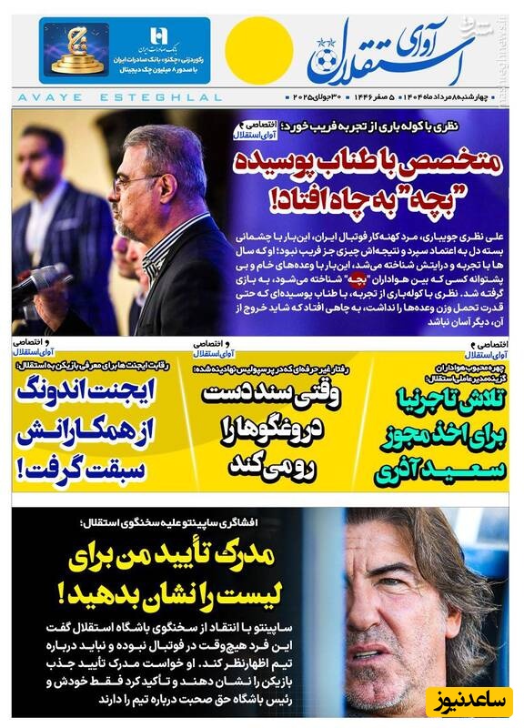 به گزارش سرویس ورزش ساعدنیوز، روزنامه‌ها در شماره امروز خود به موضوعات مختلفی پرداخته‌اند؛ از گزارش‌های داغ ورزشی و حواشی پیرامون تیم‌های ملی گرفته تا تحلیل‌های سیاسی و اقتصادی. در این میان، اخبار روز، تحلیل‌ها و دیدگاه‌های تازه‌ای به مخاطبان ارائه می‌دهند.