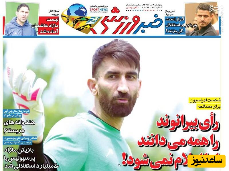 مهم‌ترین عناوین ورزشی پنجشنبه 9 مرداد 1404 در یک  نگاه / رای بیرانوند را همه می دانند ولی چرا اعلام نمی شود؟