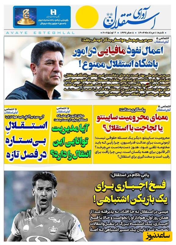 به گزارش سرویس ورزش ساعدنیوز، روزنامه‌ها در شماره امروز خود به موضوعات مختلفی پرداخته‌اند؛ از گزارش‌های داغ ورزشی و حواشی پیرامون تیم‌های ملی گرفته تا تحلیل‌های سیاسی و اقتصادی. در این میان، اخبار روز، تحلیل‌ها و دیدگاه‌های تازه‌ای به مخاطبان ارائه می‌دهند.