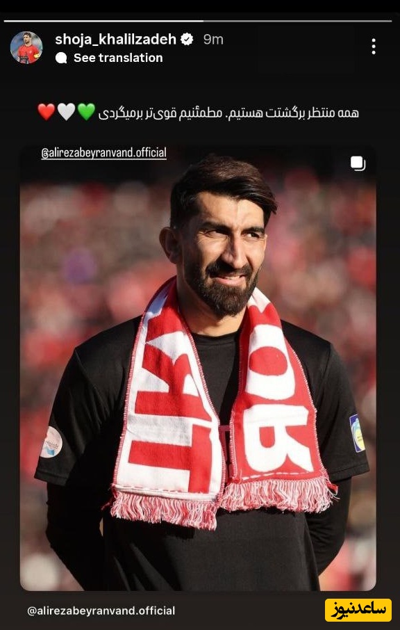 به گزارش سرویس ورزش پایگاه خبری تحلیلی ساعدنیوز، شجاع خلیل زاده با انتشار استوری زیر به محرومیت بیرانوند واکنش نشان داد.
