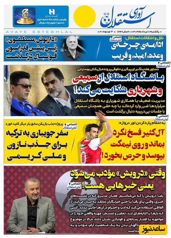 به گزارش سرویس ورزش ساعدنیوز، روزنامه‌ها در شماره امروز خود به موضوعات مختلفی پرداخته‌اند؛ از گزارش‌های داغ ورزشی و حواشی پیرامون تیم‌های ملی گرفته تا تحلیل‌های سیاسی و اقتصادی. در این میان، اخبار روز، تحلیل‌ها و دیدگاه‌های تازه‌ای به مخاطبان ارائه می‌دهند.