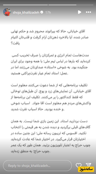 به گزارش سرویس ورزش ساعدنیوز، مدتهاست تمام انرژی و تمرکز برخی افراد صرف تخریب کسانی شده که با جان و دل برای تیم ملی جنگیدهاند. افرادی که با شوخیهای «استادانه» صدای خود را به گوش همه میرساندند، حالا که حکم نهایی محرومیت بیراوند صادر شده، در عمل نشان دادند هدفشان فقط نفرتپراکنی بوده است. ادامه متن در زیر...